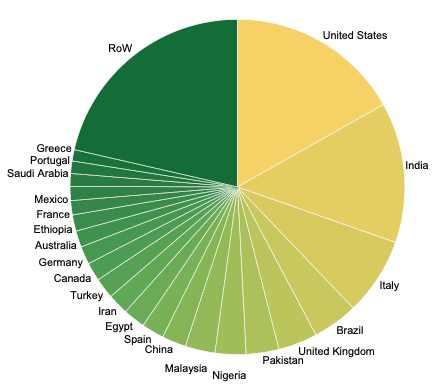 There are now more than 1,800 rapid reviewers. The response was global, and the pattern of those signing up appears to closely mirror the incidence of disease in different countries, as shown below. The USA and India are comfortably higher than in other countries, with Italy and Brazil closely behind. (Note – for transparency and clarity, COVID-19 sign-ups have been shown on a logarithmic scale while total reviewers signed up are not):