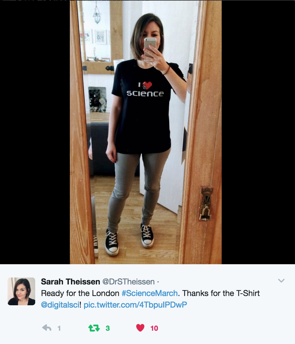 To show our support we gave away our popular “I Love Science” T-shirts for people to wear on the day. Supporters will be donning our T-shirts all over the world, from Madrid, to Cleveland, to Taiwan!