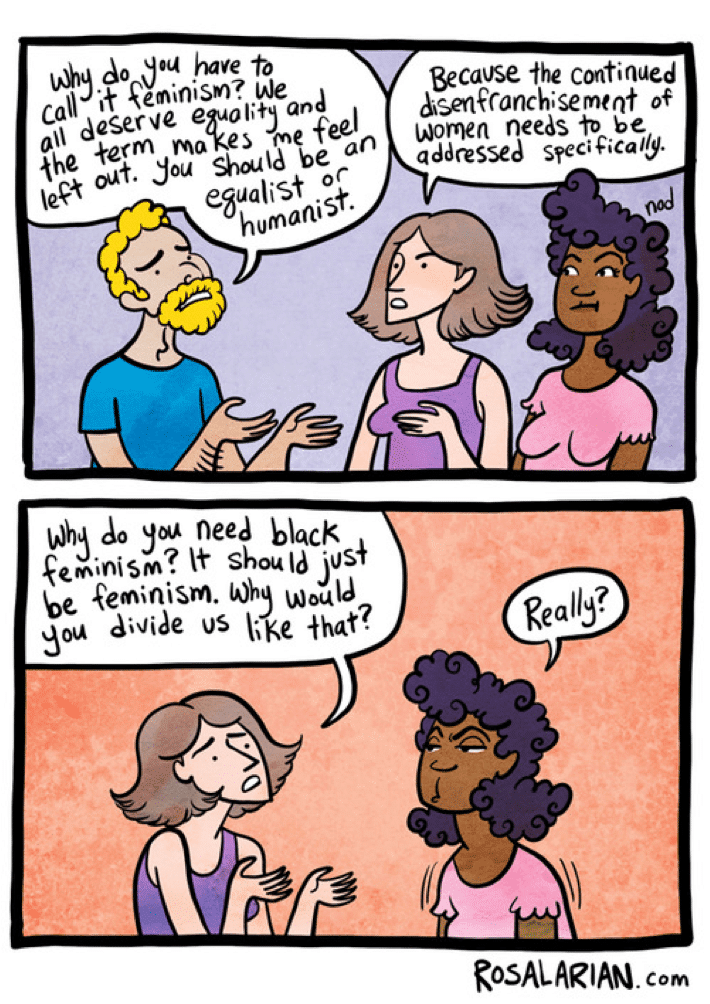 Sadly the same language used by some men to dismiss feminism is also used to dismiss the issues of intersectionality. We have to stop doing this, and work together to bring about true equality for everyone in STEM.