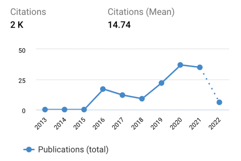 - A large number of articles published (130+) in a short time (from 2016-2021; source: Dimensions)