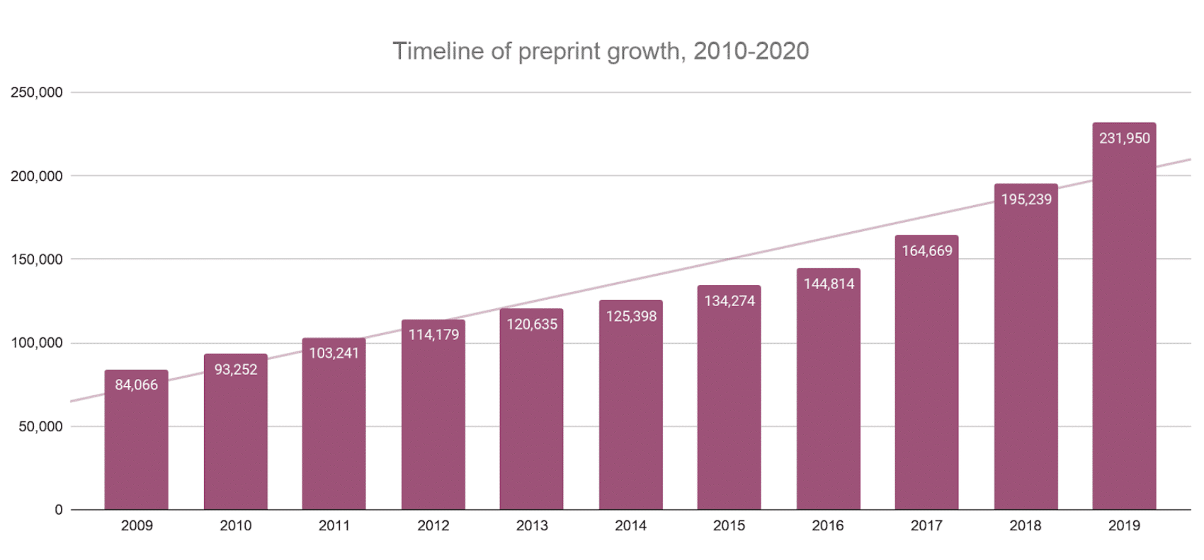 Figure 8: Preprint publications grew by more than 175% between 2009 and 2019.