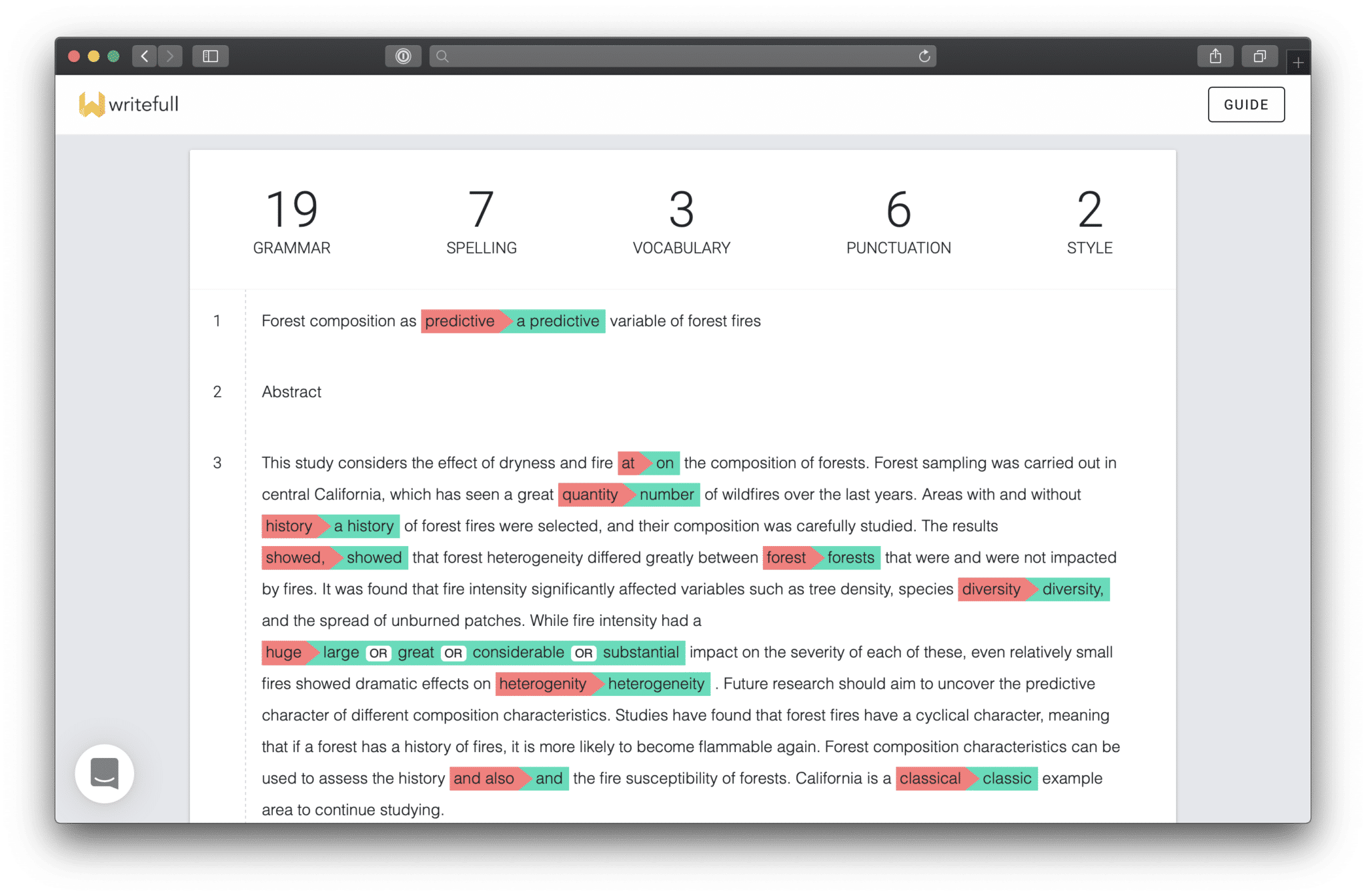A challenge to Writefull – and to any NLP application – is noisy input. If an author writes sentences that are very different from the language that Writefull’s models know from training (i.e., from the journal articles), Writefull may fail to give accurate feedback. Think of an author messing up word order or making several serious grammar mistakes in one sentence. The challenge is therefore to identify those cases where it is best to not suggest anything, for a suggestion might turn out to be incorrect.