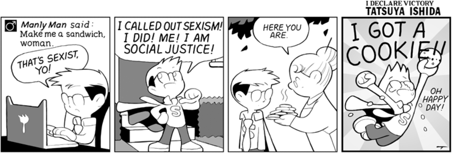 In other words, it’s the act of seeking approval and praise for doing something that we should all be doing anyway. Believing that women should receive equal pay for equal work, or that women shouldn’t be sexually harassed, or calling out sexist comments online are all examples of things that we should all be doing anyway and doesn’t deserve special kudos. A flickr user demonstrated this by baking actual ‘ally cookies’ which are hilarious and look delicious at the same time.