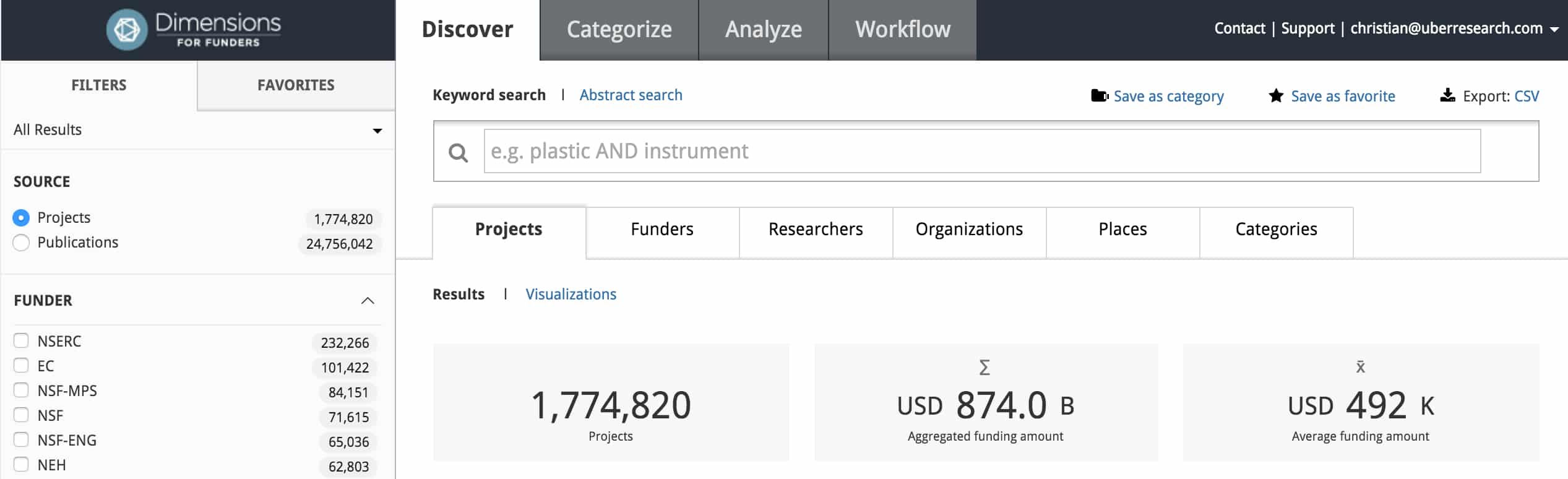 The above numbers are the latest characteristics of the global grants database which can be analysed using the Dimensions tool from ÜberResearch.