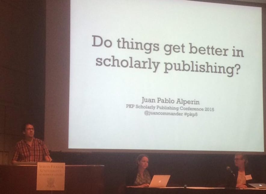I was pleased to attend and speak at the Fifth PKP Scholarly Publishing Conference in Vancouver in August . PKP stands for the “Public Knowledge Project”, which was founded in 1998 by the Canadian educator John Willinsky from within the Faculty of Education at UBC (University of British Columbia). John is currently a faculty member at Stanford and PKP’s administrative home base is the Simon Fraser University Library. The project is dedicated to improving the scholarly and public quality of research.