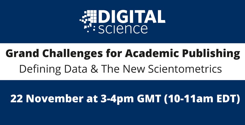 Tune into our latest thought leadership webinar, “Grand challenges for academic publishing: Defining Data & The New Scientometrics” on Wednesday 22 November at 3-4pm GMT (10-11am EDT).