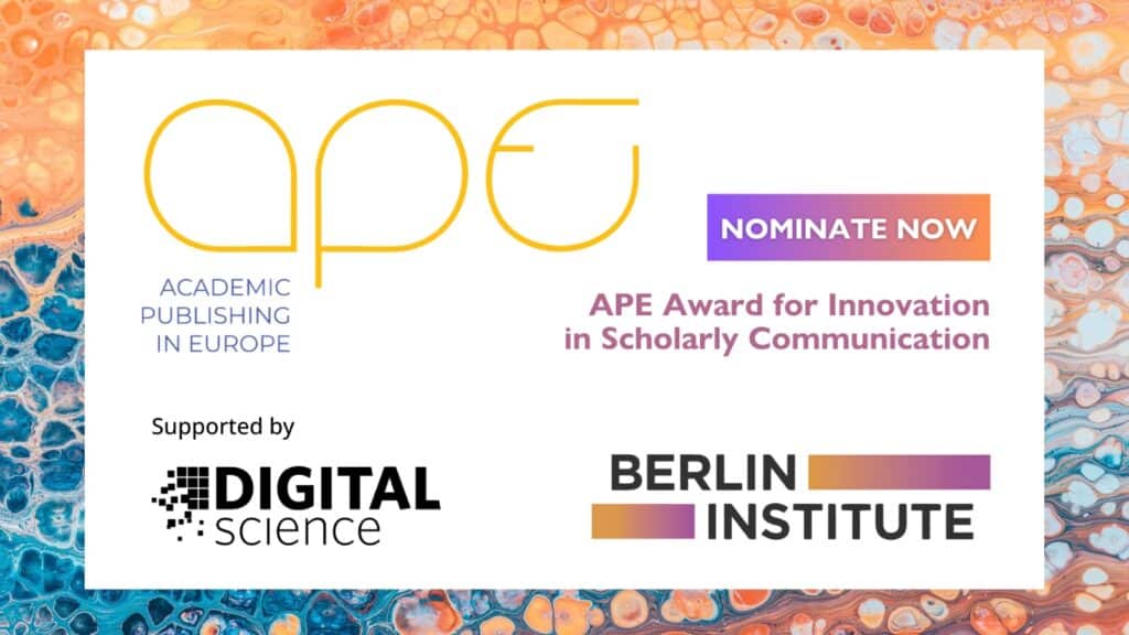 The 2025 award will be presented at the 20th Academic Publishing in Europe APE Conference in Berlin (14-15 January 2025).