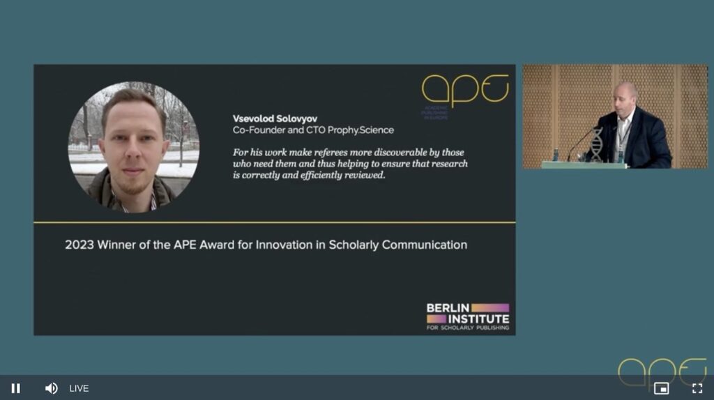 Digital Science is pleased to announce that Ukrainian Vsevolod Solovyov has won the inaugural APE Award for Innovation in Scholarly Communication at the 18th Academic Publishing in Europe (APE) Conference in Berlin, Germany.